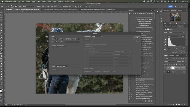 Zeg eens eerlijk… hoeveel tijd spendeer jij nog aan het handmatig bewerken van élke foto uit je shoot? Als jij na een dagje stal thuiskomt met 120 beelden en die één voor één doorloopt, dan is deze blog over batch editing in Photoshop voor paardenfotografie voor jou.