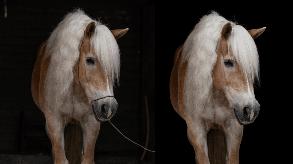 - Achtergrond niet zwart genoeg? Onderbelicht meer of vergroot de afstand tussen paard en achtergrond