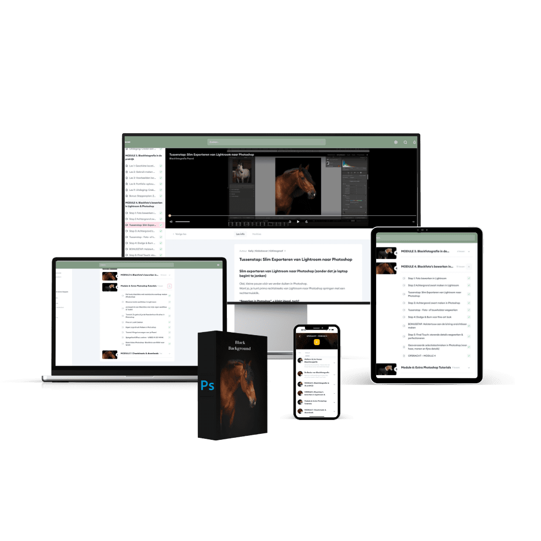 Je opent Photoshop na een shoot en weet precies wat je wilt. Maar dan begint het: welke selectiemethode werkt het best voor deze vacht? Hoe krijg ik die manen netjes? Waarom ziet de achtergrond er bij de ene foto wel goed uit en bij de andere niet?