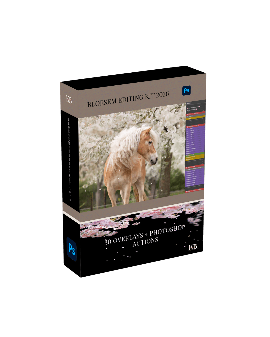 30 bloesem overlays + Photoshop actions + videotutorial. Klik, kies een toon, klaar. Geen gokken meer.